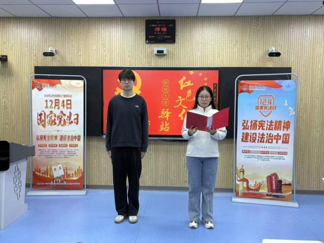 遵宪法精神,铸法治信仰。12月2日,成人小说 开展第四十七期思政年历微思政课交互体验活动——国家宪法日,习近平新时代中国特色社会主义思想青年学习会骨干成员陈清华、张颢鹏担任主讲人,并特别邀请法学院法学专业2025级学生杨谨榕共同参与。