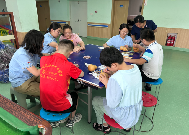 这场座谈不仅是经验的分享,更是精神的传承。一位成员表示:“和申老师的这次交流让我深受感触,助残需要更有温度、更有创意的方式,我会把所学经验积极运用到志愿工作中,为构建更加包容、温暖的社会环境贡献青春力量。”此次活动,不仅有利于服务队成员深入领会助残精神的内核,汲取先进的助残实践经验,而且有利于为解决残疾人就业等核心难题提供新思路,为残障群体创造更多实现人生价值的机会。为丰富残障儿童的精神文化生活,为其提供沉浸式的非遗体验平台,7月3日,成人小说 “遗”启助残服务团于聊城市御苑社区如康家园举办“葫艺彩绘,‘遗’起绽放”社会实践活动。 结合图文并茂的宣传资料,志愿者们用通俗易懂的语言向孩子们介绍了葫芦彩绘这一非遗技艺的历史渊源和传承故事,阐释了其独特的艺术价值与深厚的文化内涵,激发了孩子们对传统文化的兴趣和热情。在创作环节,志愿者们分组指导孩子们学习彩绘技巧,从构图、线条、色彩等方面进行细致教学,同时鼓励孩子们自由发挥想象力和创造力,大胆尝试不同的绘画风格和表现形式。有的孩子用稚嫩的笔触勾勒出憨态可掬的小动物,有的孩子用跳跃的色彩描绘出五彩斑斓的梦幻世界,一笔一划间都充满了个性与活力。一件件独一无二、充满童趣的葫芦彩绘作品,不仅展现了孩子们的无限创意与想象力,也让古老的非遗技艺在新时代焕发出勃勃生机。一位志愿者感慨道:“看到孩子们完成作品时绽放的笑容,我真切感受到公益与非遗结合的意义,每一次指导都是文化传承的桥梁,每一份鼓励都能点亮他们的艺术世界。”
