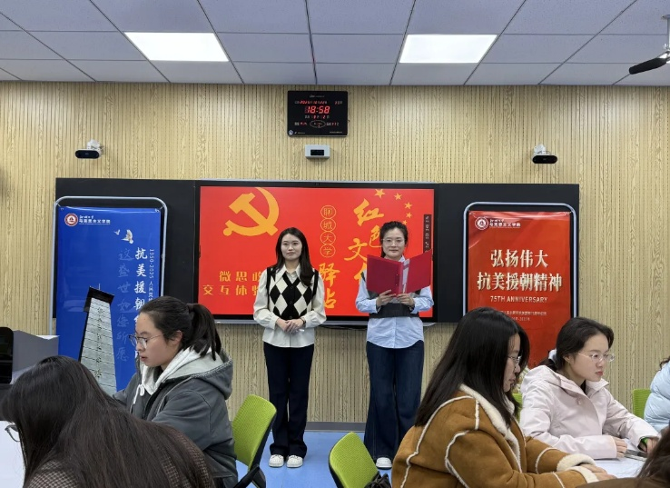 敬英烈不朽,续精神血脉。在抗美援朝出国作战75周年之际,成人小说 开展第四十二期思政年历微思政课交互体验活动——抗美援朝纪念日,习近平新时代中国特色社会主义思想青年学习会骨干成员邵晓雅、马雪琛担任主讲人。