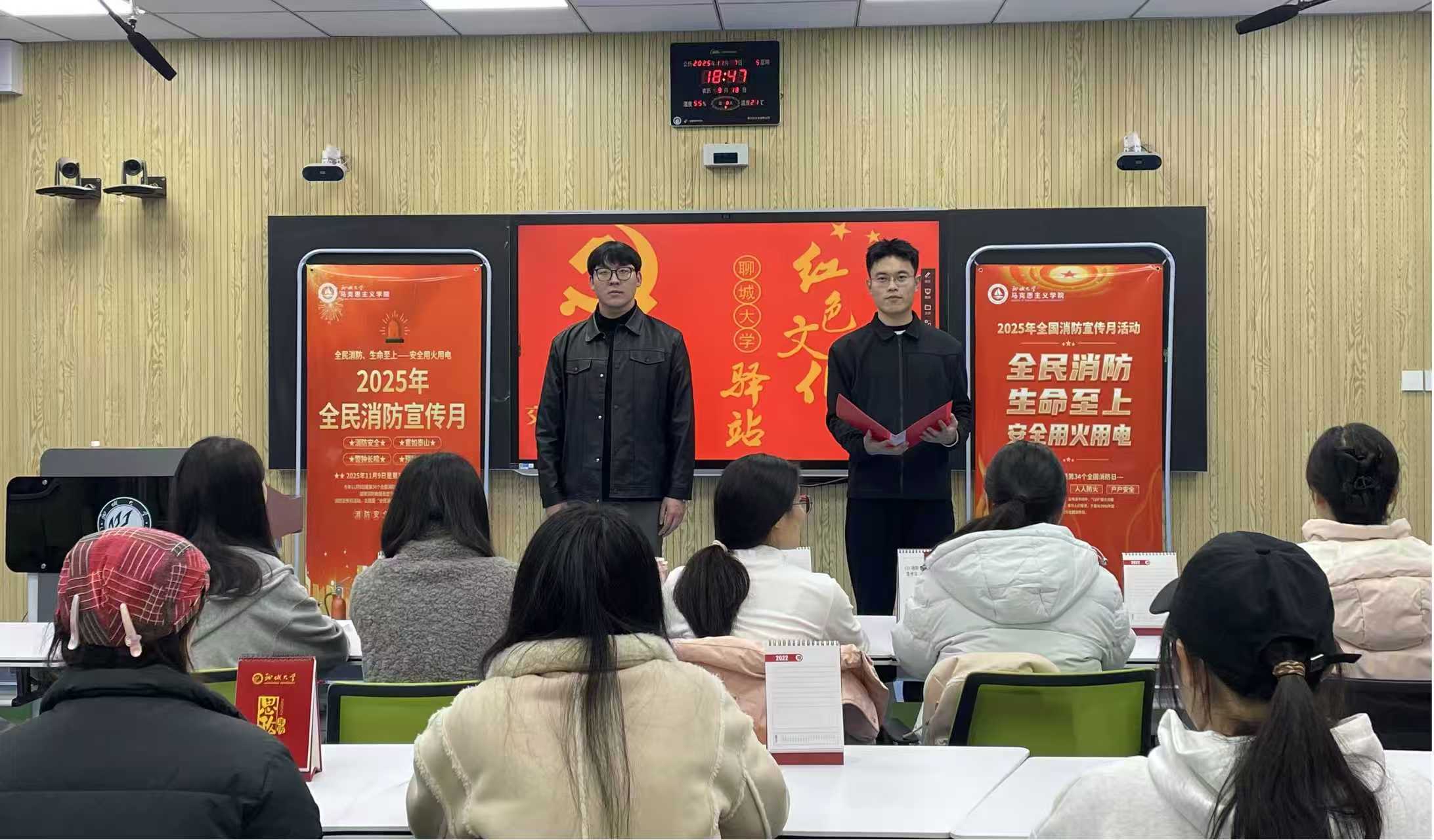 侯典宏以“消防安全,重于泰山”为主题,从“消防日内涵解读、通识技能掌握、安全用火用电规范、科学逃生方法传授”四大维度,系统讲解实用消防知识。他不仅梳理了必备的消防知识要点,更聚焦宿舍、图书馆、机房等校园高频场景,精准剖析用火用电中的潜在风险隐患。通过理论讲解与实操教学相结合的方式,将冷静应对、安全撤离的安全意识深度植入同学们心中。他发出倡议,呼吁大家将安全理念内化于心、外化于行,让“全民消防、生命至上”的口号真正转化为每个人的自觉行动,共同筑牢校园安全防线。