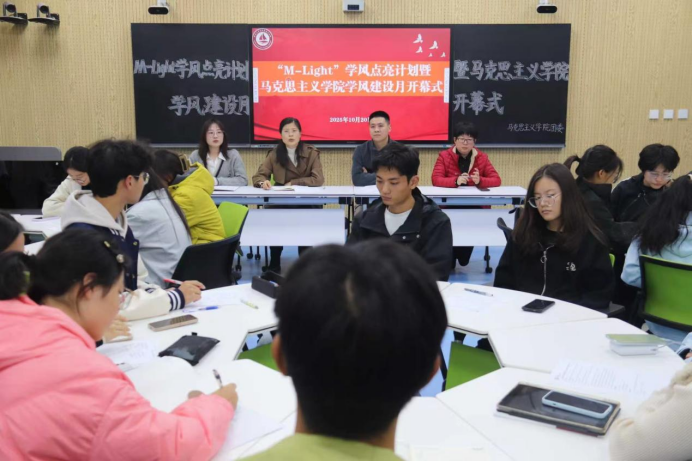 为深入贯彻落实立德树人的根本任务,积极响应学校关于加强学风建设的号召,营造勤勉向学、求真务实的学习氛围,10月20日,成人小说 于东校区6#A101举行“M-Light”学风点亮计划暨学风建设月开幕式。学院党委副书记、副院长刘凤芹,团委书记史仁扩,辅导员李洪霞、裴新丽及各年级学生代表参加。