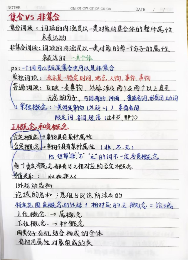 在笔记的筹备与提交阶段,同学们结合学科特点与学习方法,形成了丰富多样的笔记形式。参赛者通过分类梳理与重点标注,系统整理知识并强化理解记忆。例如,《马克思主义哲学》课堂笔记运用对比分类、实例解析与颜色标注,理清核心概念;《逻辑学》笔记采用“定义+示例+提示”的结构,拆解专业术语,厘清概念层级;《额尔古纳河右岸》读书笔记则摘录经典段落,辅以批注与场景图,实现抽象意识的具象化表达。