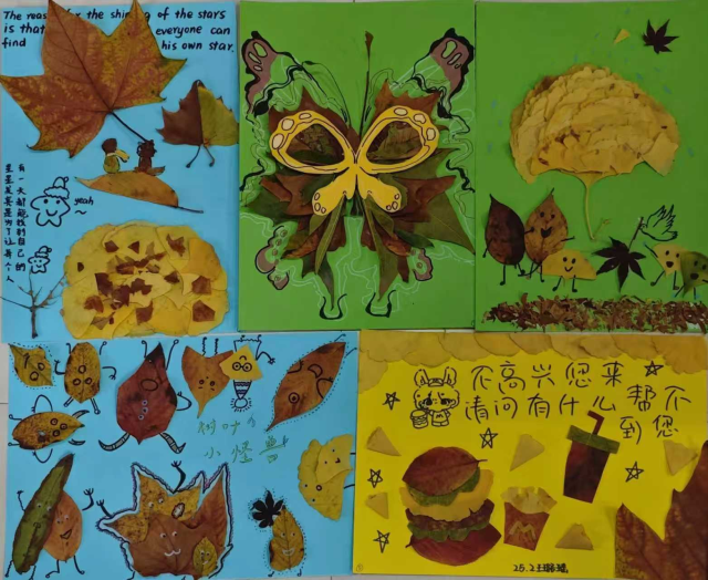 本次活动以枫叶、银杏叶、樟树叶等多种形态各异的落叶为创作载体,鼓励同学们在天然的叶片上大胆开展艺术创作。在创作过程中,同学们充分发挥自身的创意灵感,巧妙运用剪切、拼接、粘贴等多种艺术手法,将内心的情感体验与对生命的感悟,转化为一幅幅可触可感的艺术作品。每一片落叶的独特形态、每一抹色彩的精心搭配,都承载着创作者独一无二的情绪与故事,生动展现了同学们敏锐感知生活、勇敢表达自我的出色能力。
