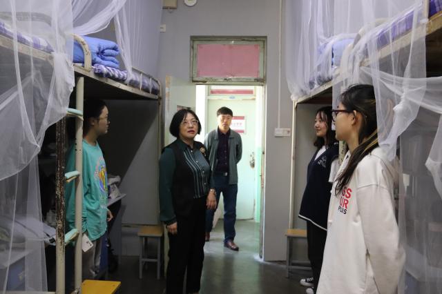 深入了解学生宿舍安全,开展安全排查,普及安全知识,关怀学生生活。老师们排查宿舍用电情况,查看插座、插排、风扇以及违规电器的使用情况,同时检查学生宿舍卫生,张华筠表示要有安全意识并注意个人卫生以及做好宿舍通风。老师们与学生亲切交谈,详细了解学生插座日常使用情况,并叮嘱一定要做到遵守学校宿舍安全规则,提高自身防范意识,杜绝安全隐患,保障自身安全,宿舍是一个大家庭,每位同学都要共同创建一个安全、和谐、健康的宿舍学习生活环境。张华筠强调要加大对大四宿舍的检查力度,增强大四学生的安全责任与意识,同时关心学生们的考研情况,学习方面的问题, 勉励大家要奋发拼搏,努力学习,共同提升,在安全这座城墙的保护下取得理想的成绩。